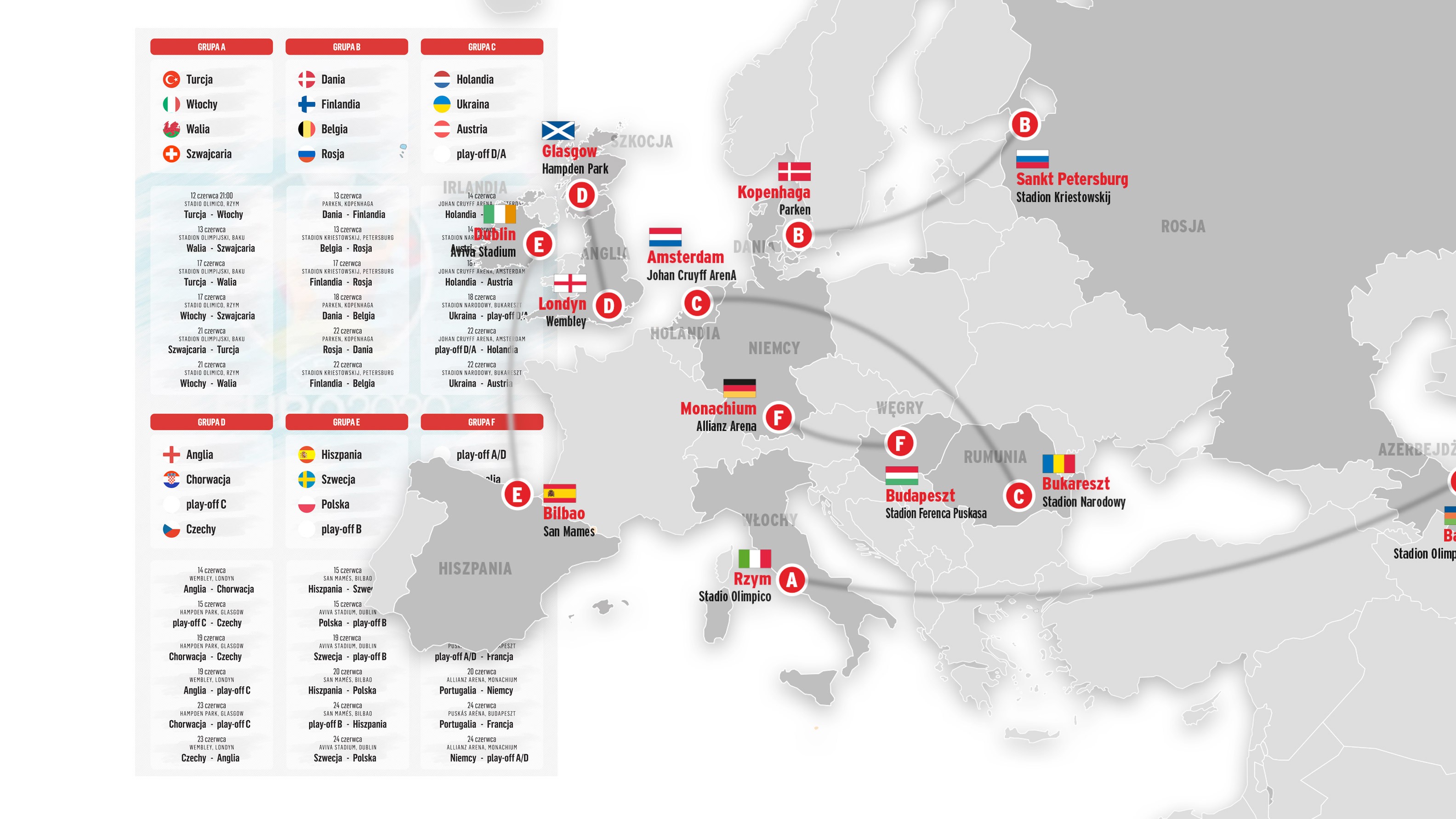 Faza Grupowa Euro Mistrzostwa Europy Bon Ballon from bonballon.com Смотрите матчи чемпионата европы по футболу 2020 онлайн в эфире и на сайте первого хотите получать уведомления от проекта «чемпионат европы по футболу 2020/uefa euro. Jak wygląda drabinka euro 2020 (2021)? W naszym serwisie dowiesz się kiedy odbędą sie mecze fazy grupowej oraz mecze finałowe. Już w sobotę 26 czerwca zostanie zainaugurowana faza pucharowa euro 2020. Redakcja natemat 11 czerwca 2021, 09:43. Oprócz superpuchar uefa 2020 możesz znaleźć rezultaty dla ponad 5000 rozgrywek i spotkań z z ponad 30 dyscyplin sportu z całego. Po raz pierwszy w historii w turnieju finałowy europejskiego czempionatu w sobotę 26 czerwca czekają nas dwa pierwsze mecze 1/8 finału uefa euro 2020. Nowy terminarz i drabinka turnieju piłkarskich mistrzostw europy 2020 w 2021 roku.